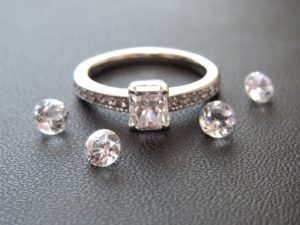 ”本物のダイヤを見分けてみよう♪”というテーマで、実際にダイヤによく似た石をいくつか観察したり手に取りながら見分けていきます。