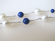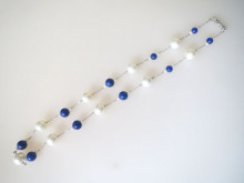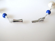 ラピスラズリを小さな淡水パールで挟んでいます。