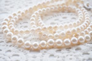 丸くて白くて小さめな真珠で、可憐な印象があり、冠婚葬祭で