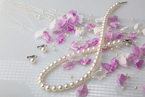 白のパールのネックレスとイヤリングを、
