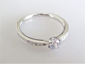脇のメレダイヤがしっかりと真ん中のダイヤを引き立てていますね。