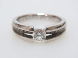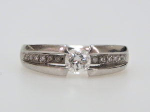 *もともとついていた脇のメレダイヤも、大きさが合うものは再利用させていただいたのでお値段も通常よりお安くなりました。石を外したあとの元の台は、ご希望でしたら買い取りさせていただき、リフォーム代金から相殺いたします。
