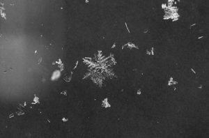 黒いオブシディアンの中に雪の結晶のように