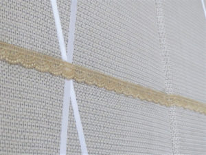 大島の生地の上にリボンを貼って