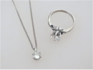 ダイヤのペンダントとリングです。