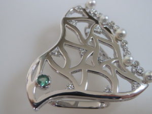 尾の部分のベビーパールとメレダイヤが華やかさを出しています。