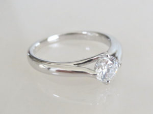 ダイヤが4本の爪だけで留まっていて宙に浮くようなデザインです。