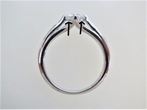 ダイヤの裏側にプラチナの線を
