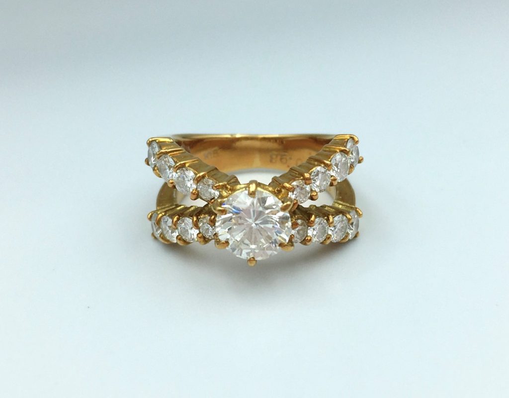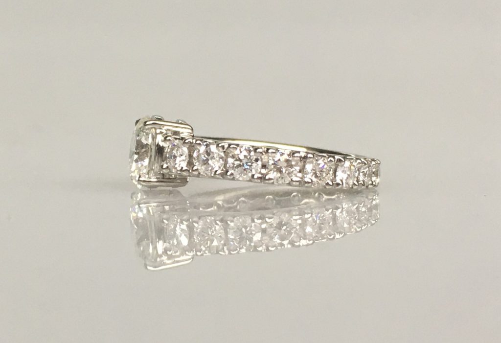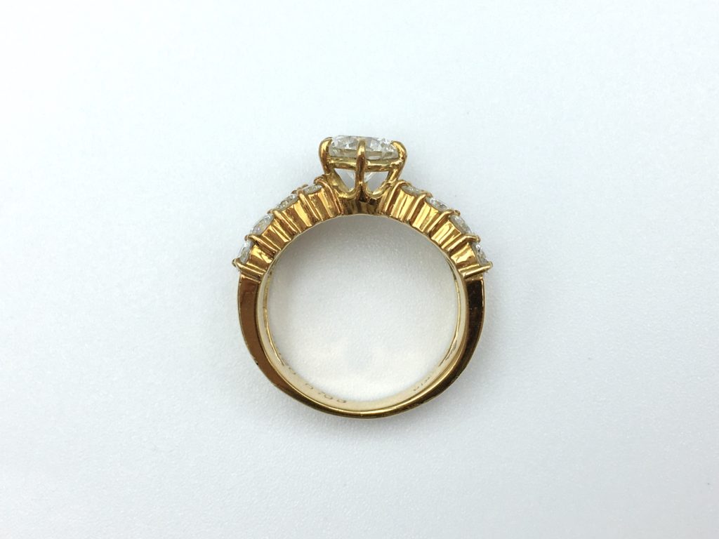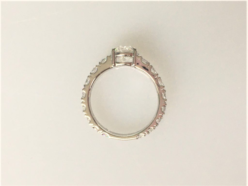 もともとダイヤが少し大きさがグラデーションになっていたのでこの指輪も手のひら側にいくにしたがって少しずつダイヤが小さくなっていっています。