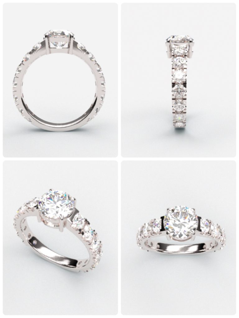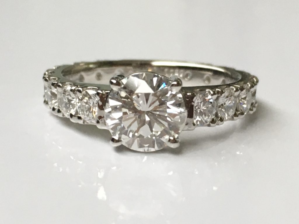 脇のダイヤは2列になっていますが、これを1列にしてフルエタニティーに近い指輪になるようにデザインさせていただくことにしました。