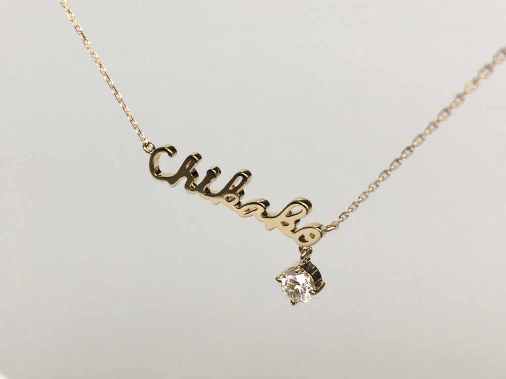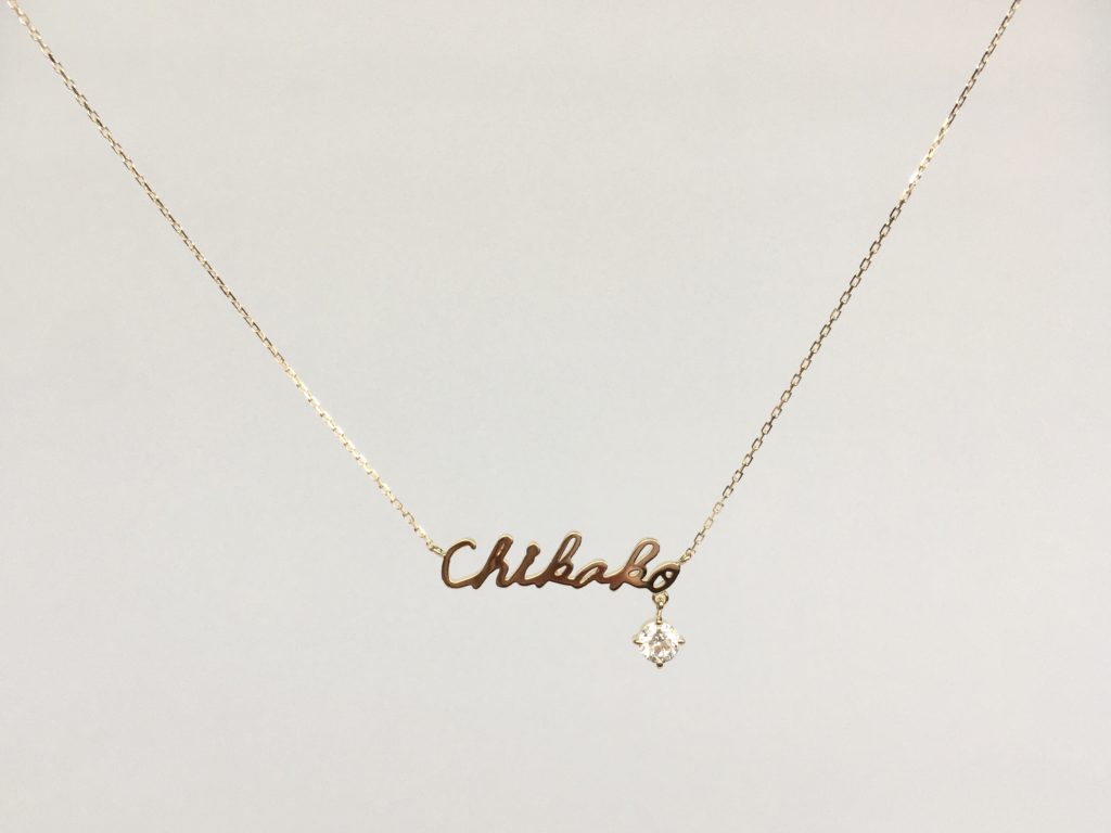 今回お母さまであるO様がお嬢様のお名前を手書きで書いた文字をそのままネックレスにさせていただきました。