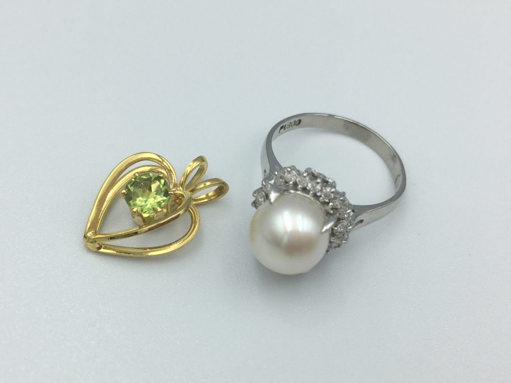 ペリドットの少しオイリーな黄緑色は優しさがあって、パールによく合いますね。