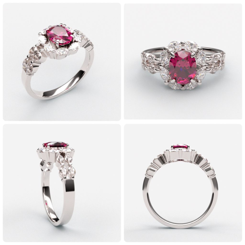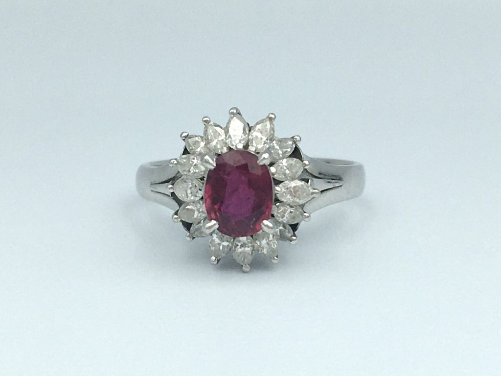 できるだけ今ついている宝石(ルビーと周りのダイヤも)なるべく使ってプラチナのリングにリフォームされたいということで、オーダーメイドでいくつかご提案させていただきました。
