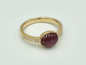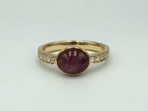 ドーム状の、飴のようなカット(カボションカット)のルビーがかわいくなって生まれ変わりました。