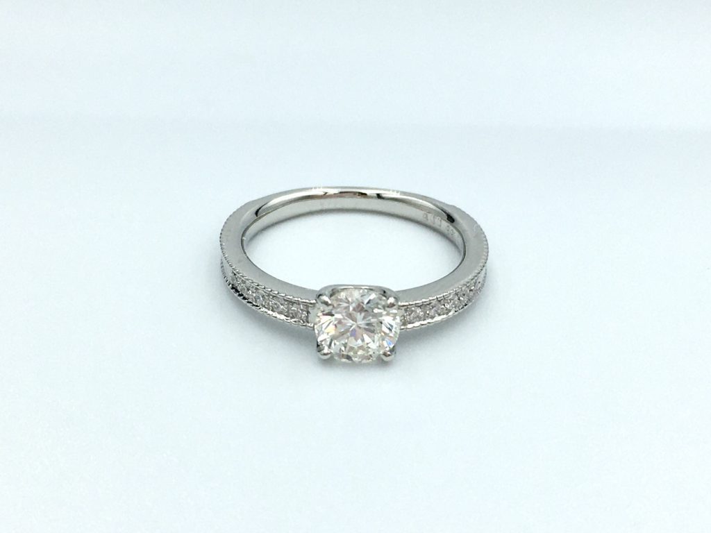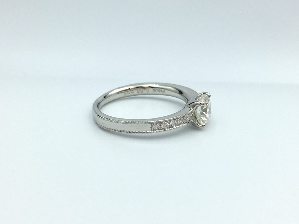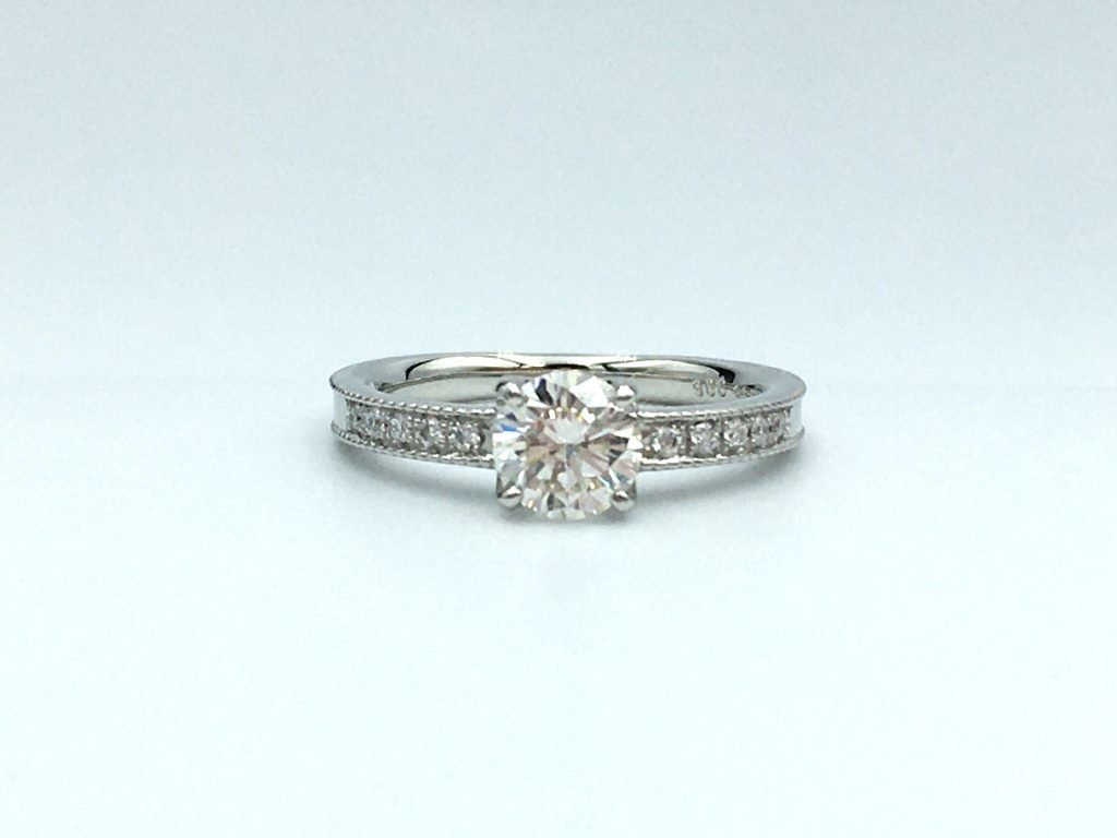 0.7ct近くの大きさでしたので0.7ct用の既成のデザインをいろいろご覧いただきながら決められたのがこちらのデザインでした。