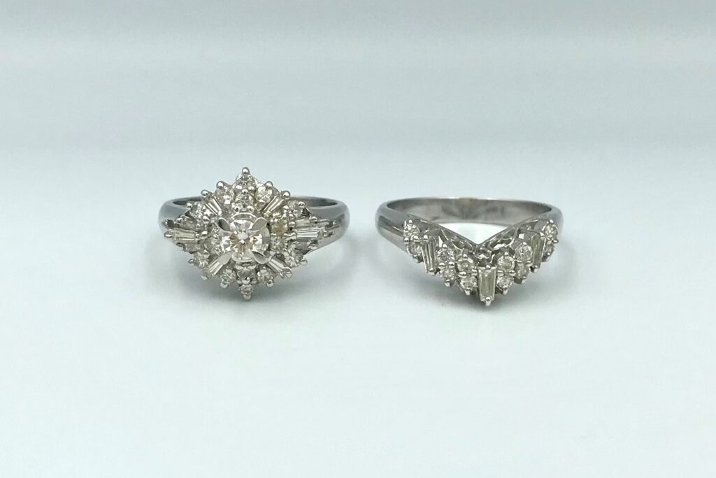 丸いダイヤと四角いダイヤの入った2本の指輪です。