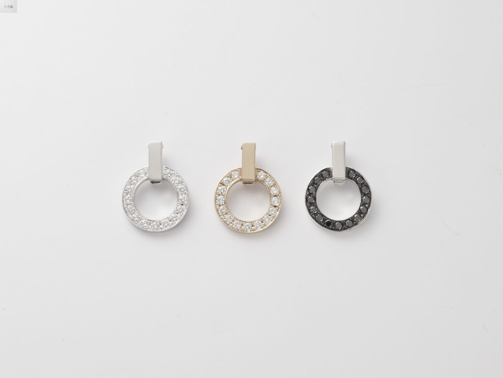 色は3色。左からホワイトゴールド、ピンクorイエローゴールド、ブラックダイヤです。