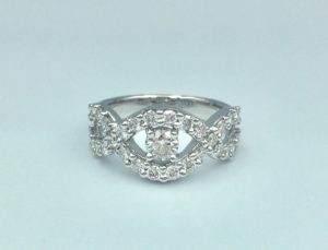 お義母様から譲り受けられたダイヤに、メレダイヤを足してお作りしました。