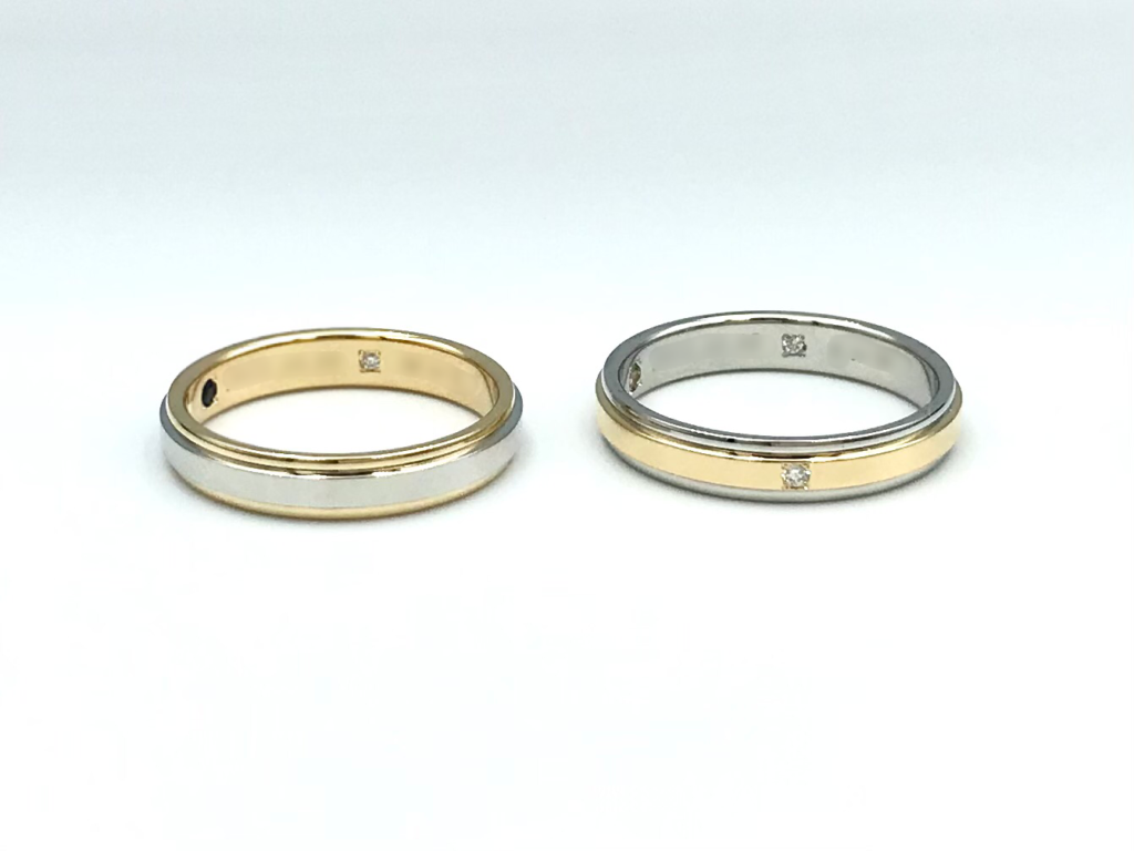 プラチナと18金のコンビに、女性用はダイヤが入っています。