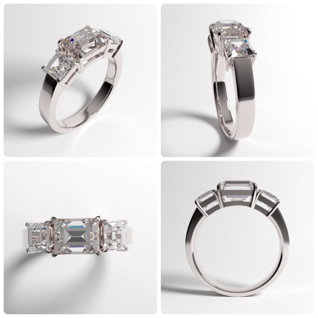 プリンセスカットのダイヤが美しく、ダイヤを活かすため高級感のあるシンプルなリングに仕上げています。